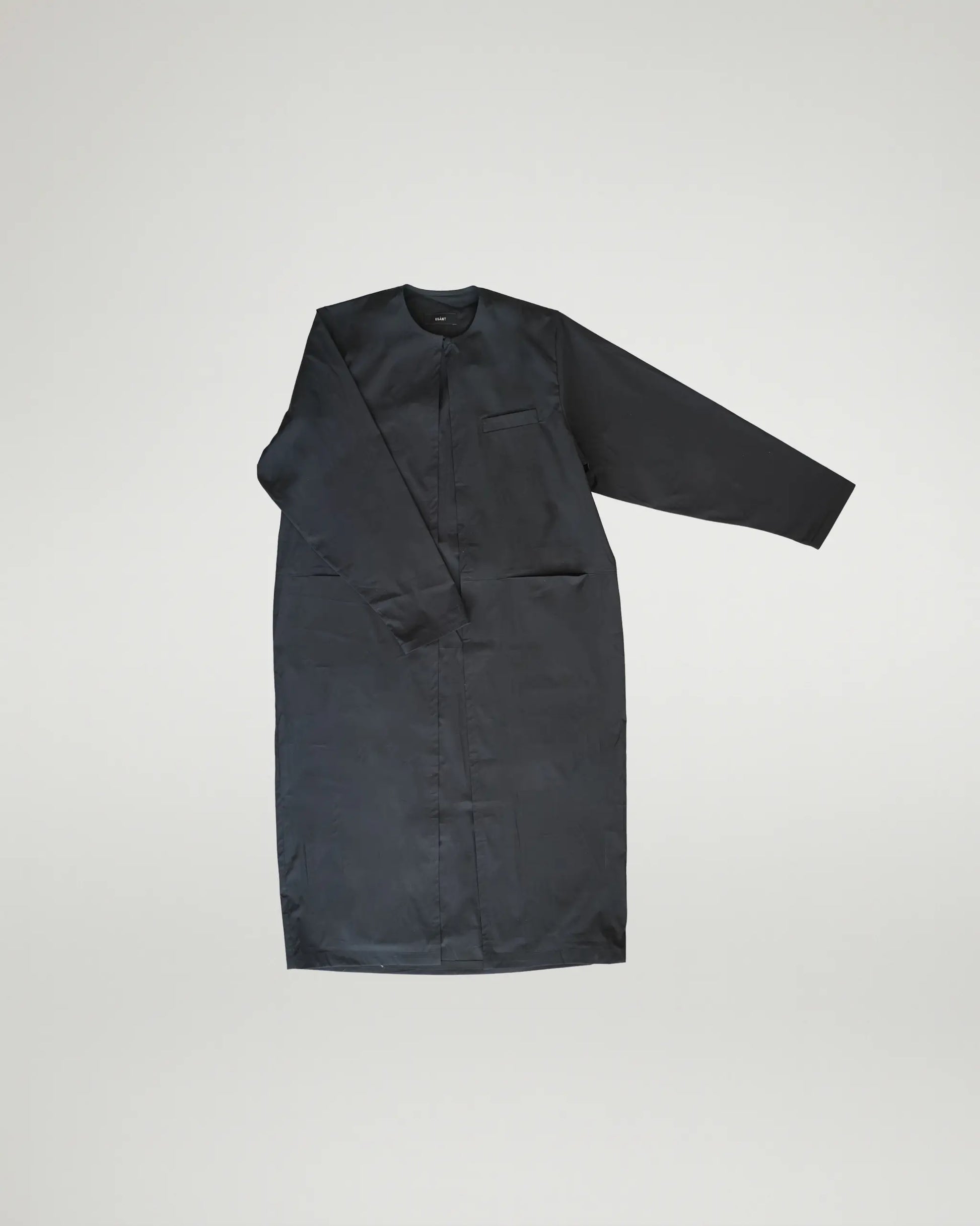 The AMOS Coat features an oversized silhouette cut from dense Supima cotton, offering both volume and fluidity. Side slits introduce motion and ease, allowing the fabric to shift gracefully as it follows the body.
