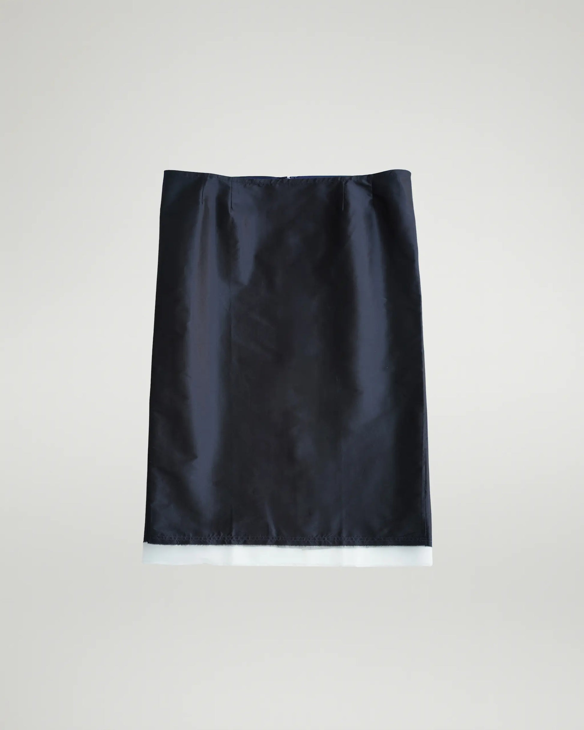 Crafted in Silk Taffeta, the DA Skirt retains its elongated, minimalist silhouette while gaining a refined texture and tactile depth. Crisp darts at the waist subtly shape the hips, and a clean back slit offers ease of movement and a touch of modern clarity.