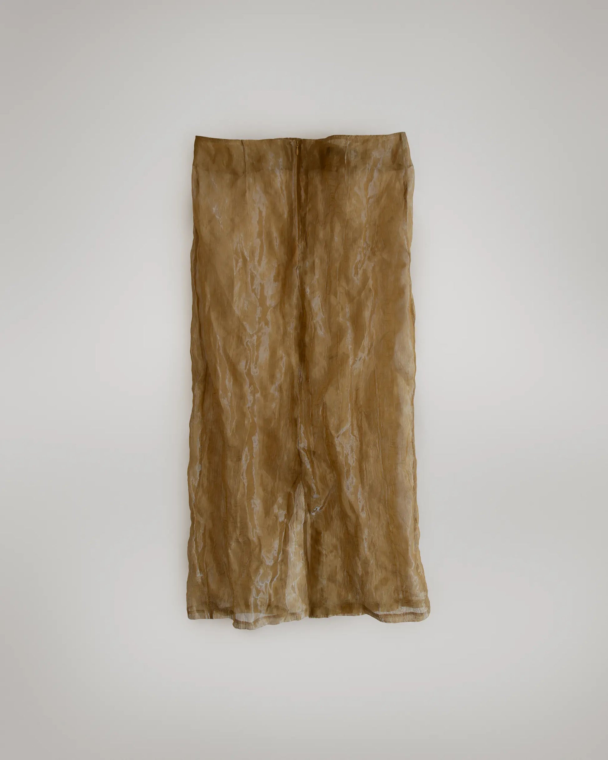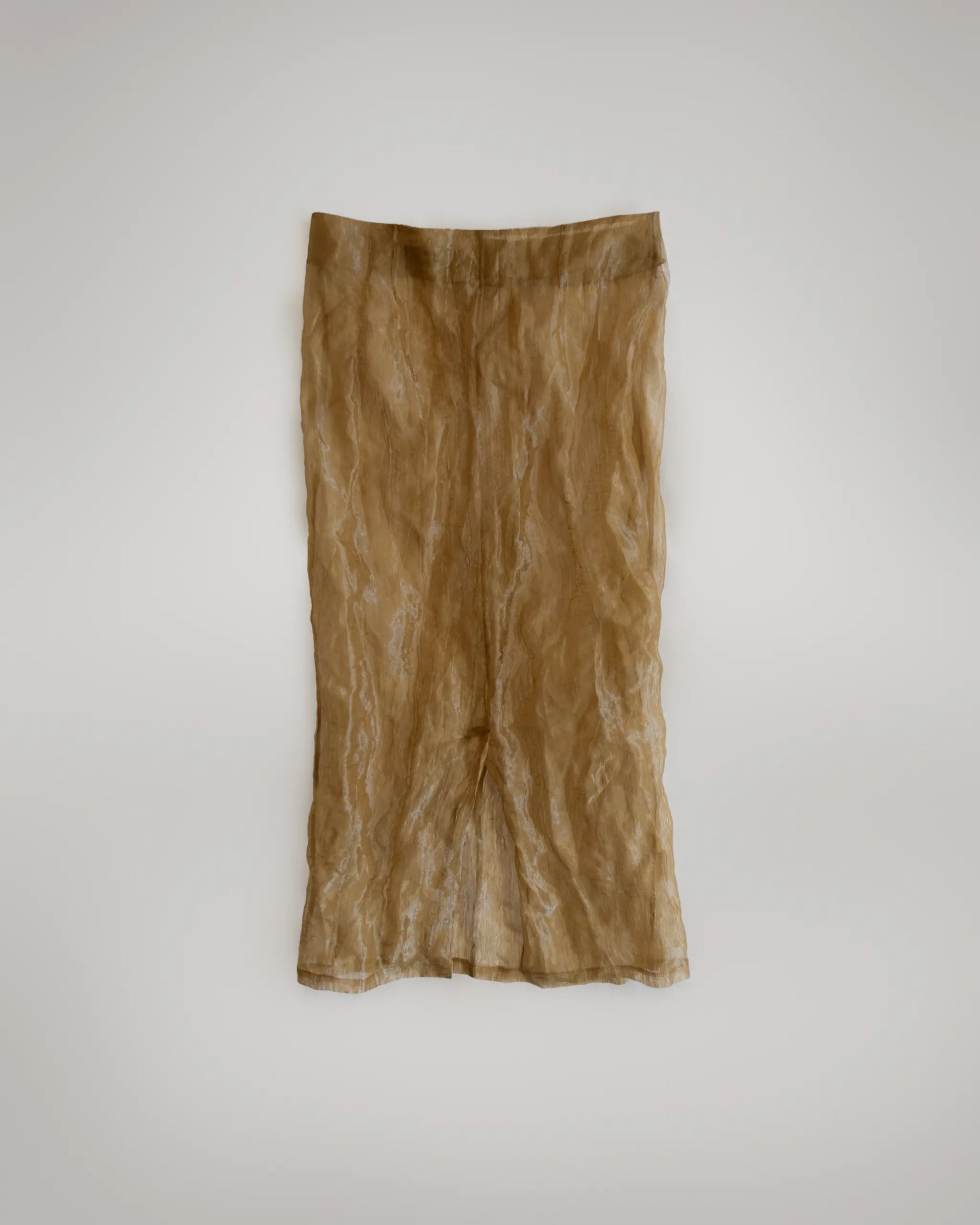 The ENTO Skirt features a long, straight silhouette shaped by soft darts that gently contour the hips without breaking its clean vertical fall. At the front, a keyhole slit interrupts the length with measured intention—introducing movement while maintaining the piece’s composed structure.