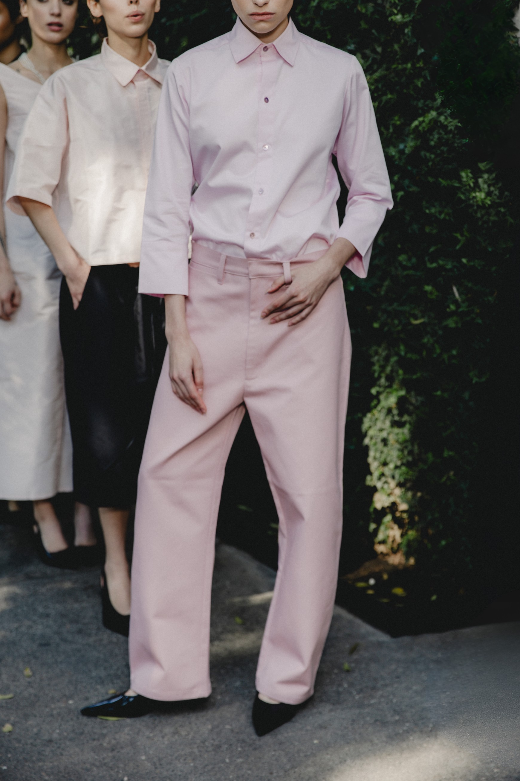 Dry clean only. Avoid heat, steam, and direct sunlight to preserve the fabric’s natural sheen and texture. Store hanging or lightly folded to prevent creasing.