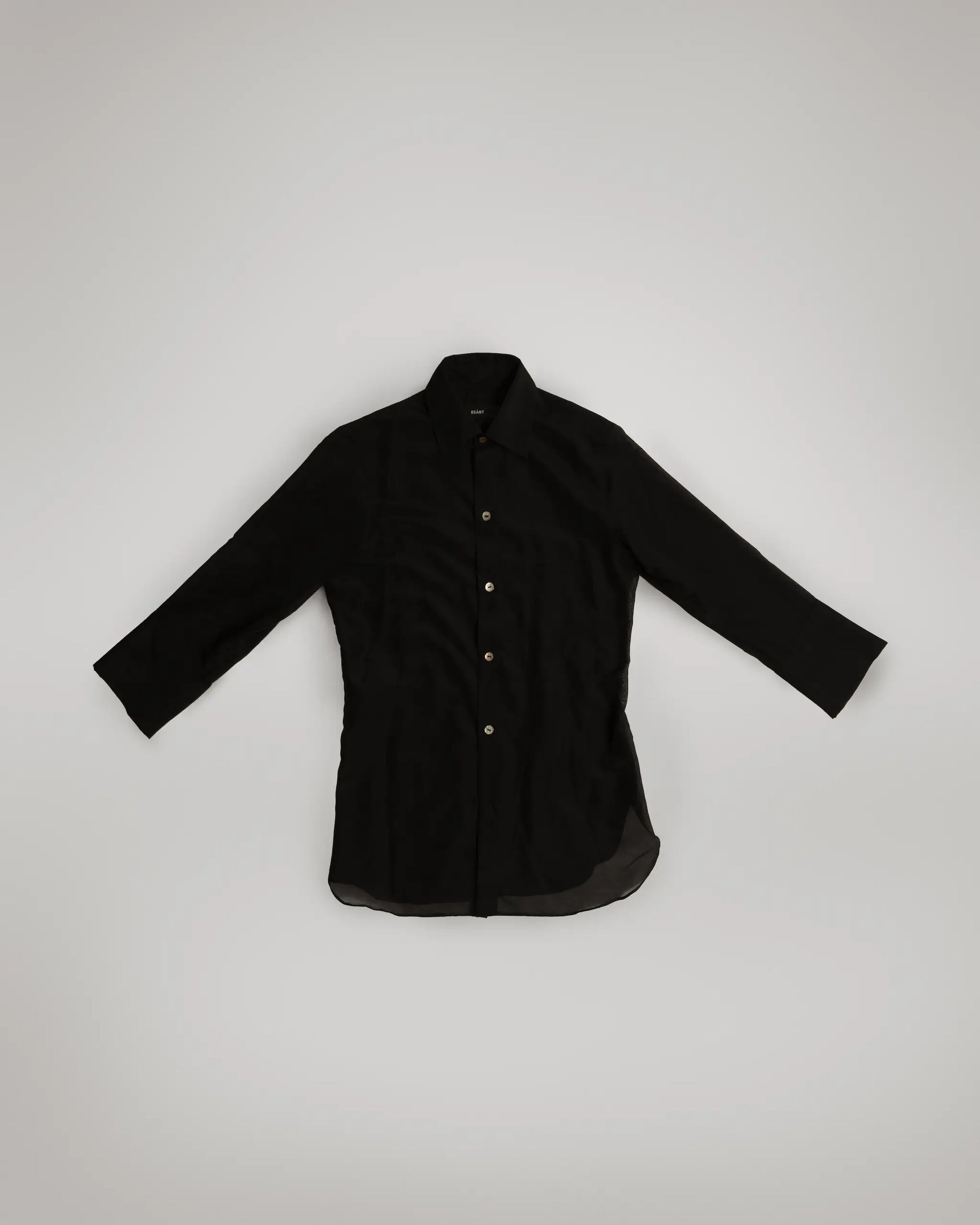 The Form Shirt features a close, form-fitting silhouette that contours the torso with precision. The front is minimal and uninterrupted, anchored by a classic pointed collar and a straight row of tonal buttons. Three-quarter sleeves end in a turned cuff, adding subtle volume and balance to the fitted body.