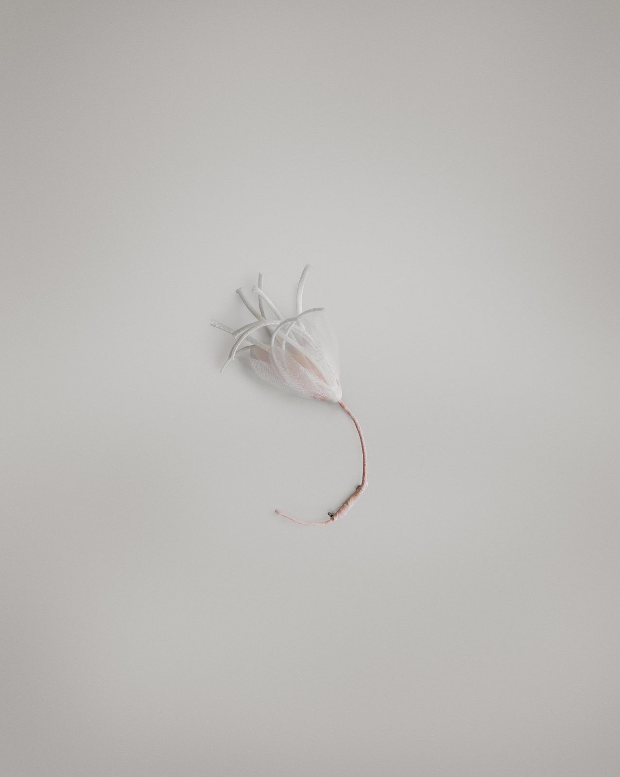 Sheer silk organza petals softly envelop sharp white silk strands—layers that wrap the core, creating a delicate façade of skin and emotion. The petals are translucent because we are sheer by nature, revealing even as we conceal. From within, the peaks emerge: bold, precise, unapologetic—symbols of strength, confidence, and edge.